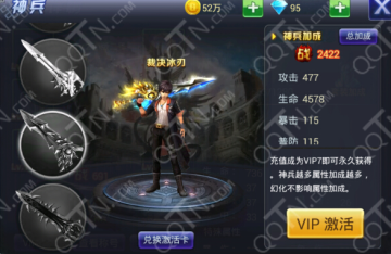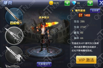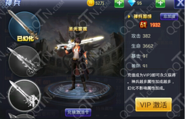 在这么多丰厚的登录奖励当中,腾牛网小编要重点推荐给大家的是VIP试用卡!领取并使用背包中的VIP试用卡,即可轻松体验VIP特权了。而在VIP特权里,最强力的特权自然是神兵激活啦!赶紧来看看使用VIP试用卡后的神兵效果吧(魔剑士造型)!