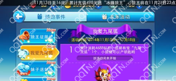 2、11月15日-11月18日,参加我爱九尾狐这个活动,累计消耗4688钻石,就可以获得稀有神宠九尾灵狐1个!