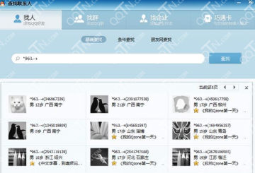 1、首先,我们进入查找联系人当中,在QQ查找栏里面输入“*963.-+”,会显示除很所类似的名字的QQ号码,如图:
