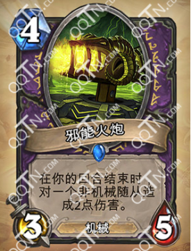 炉石传说邪能火炮在你的回合结束时,对一个非机械随从造成2点伤害!