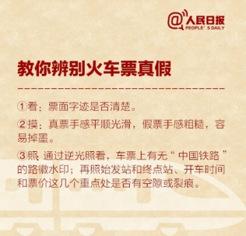 照:痛过逆光照看,车票上有无中国铁路的路徽水印,再照始发站和终点站、开车时间和票价几个重点处是否有空隙或裂痕。