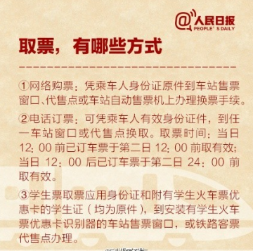 从12月1日起,铁路互联网售票、电话订票的预售期将由目前的20天逐步延长至60天。而从12月21日起,学生可以通过互联网、电话、窗口、自动售票机等各个渠道购买2015年3月15日之前的学生票,这意味着届时学生票最多能提前84天购买。以上的购票攻略大家学到了吗?