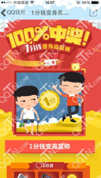 QQ钱包1分钱变身高富帅 支付1分钱100%中奖