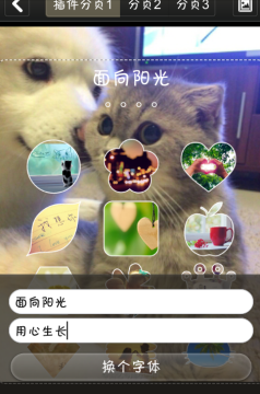 5、打开会出现12个小图标,点击加号从手机里面选择你想要的图片,不想要可以清除这个贴图,可以调形状,当12个都选择好以后就可以设置一下置顶文字了。