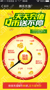 微信天天充值Q币送不停活动 最高抽取100Q币