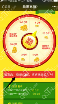 2、活动期间所有用户使用微信钱包成功充值Q币后,即可参与当日的Q币抽奖;