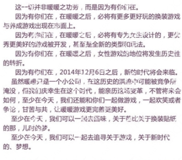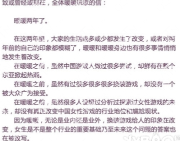 给全体暖暖玩家的信: