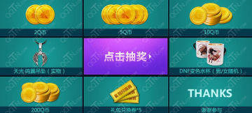 2-200Q币、礼包兑换券、吊坠、DNF变色水杯等。
