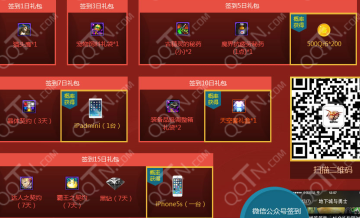 签到天数不一样,奖励也不一样,有天空套,苹果手机等大奖哦。