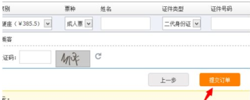 6、选择票种、席别等信息后点击“提交订单”按钮提交购买,然后付款即可。