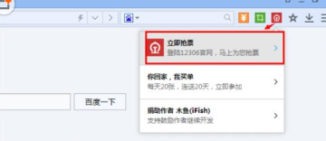 2、看到右上角有12306铁路图标,就表示是百度浏览器的抢票版。点击12306抢票工具,然后在页面中点击“立即抢票”,如图所示。此时会自动打开12306官网。