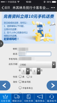 微信注册米其林会员得10元手机话费