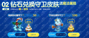 2、使用钻石兑换珍稀守卫皮肤,其中50钻石兑换一份"萌萌拐杖糖守卫(7天)",赠"奶油蛋糕"一个;100钻石兑换一份"宇航员魄罗守卫(7天)",赠"黄金蛋糕"一个。兑换多份珍稀守卫皮肤,使用时间叠加。