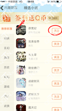 2、在兴趣部落里可以直接看到活动入口,点击进入查看规则,然后选择自己感兴趣的小说关注以后签到即可;