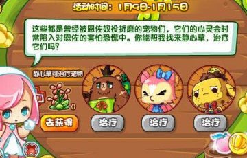 3、返回活动页面,点击“治疗”,每治疗一只宠物,就会消耗2个静心草哦!完成就可以收获奖励啦。