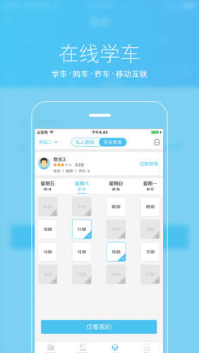 淘宝式学车,车辆种类齐全、价格透明、方便快捷。学员根据驾校、教练的好评度自由选择驾校、教练。
