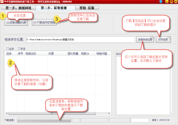 2:接下来点击软件上面的第二步:【获取相册】,获取完毕后点击【下载选中相册】