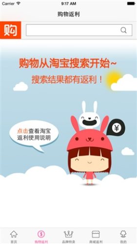 【淘宝返利】:提供淘宝,淘宝商城的返利和折扣信息,用户只需要在宝贝搜索输入淘宝网址,即可查询商品返利情况。