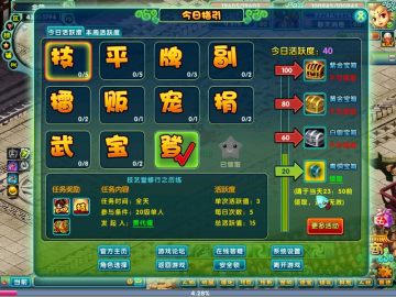 通过今日引导界面里列出的各项分类,您可以了解到本日/本周部分任务的完成度与活跃度,活跃度达到一定程度后,能够领取一些道具与金票。(金票可以在商城购买道具)
