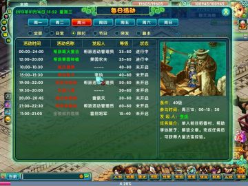 点击游戏界面左上面的“活动”图标,可以了解每天可参与的详细活动信息。