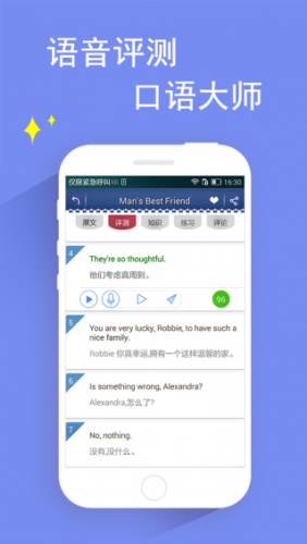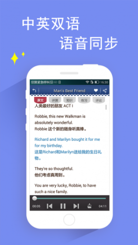 一. 支持中英文切换、自动跟读;新增语音评测功能让口语评测更权威,过程更高效,结果更详细;