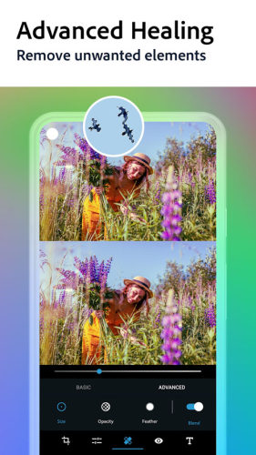 • 高级修复功能可去除任何多余元素,制作可即刻分享的照片。