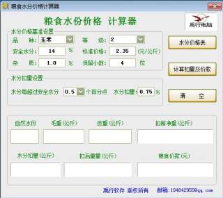 计算粮食收购中的水分扣量及结算价款,并可生成粮收购用的水分价格表。