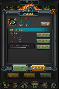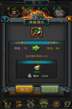 6级开启装备强化,消耗不同种类矿石、银币提升装备强化等级