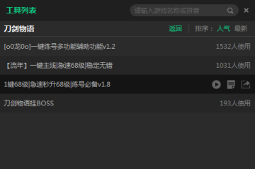 这款新浪新浪刀剑物语辅助,需要依靠新浪页游助手运行,支持游戏微端及浏览器,共提供了4款游戏脚本,辅助玩家健康成长。