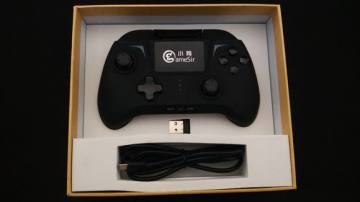打开包装盒就看到了,一份说明书,一张保修卡,还有一天数据线,拿开说明书,里面就是小鸡手柄了。里面还有一个和小米随身wifi的差不多大小的2.4G的无线接收器。盒子内部内置海绵垫防止运输途中受到损坏。