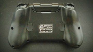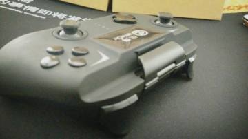 关于手柄的外观,和传统手柄略小,轻巧。上面是磨砂的,玩起游戏手感更舒适。底面处理的就不是很好,不是磨砂的,摸起来有点油油滑滑的感觉,不是很好。