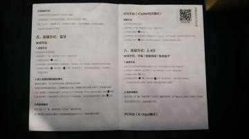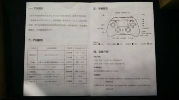 使用说明书正面一个手柄图案,以及一个二维码,扫一扫可以查询更详细的手柄使用教程。
