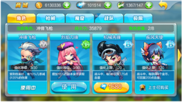 这里可以看到当前所拥有的角色,出现的使用按钮表示你已经拥有该角色了,点击使用切换当前上阵的角色;
