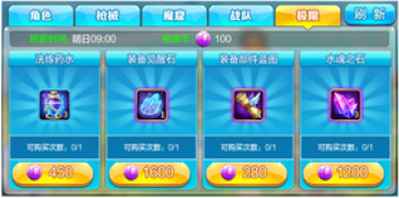 这里的商品需要用试炼币购买,每日出售的商品都是限量的,每天9点刷新物品,也可以手动刷新物品,不过这是需要消耗试炼币;