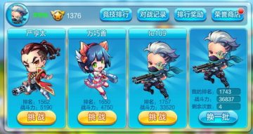 对手信息:左边显示的是3名对手的信息,对手使用的角色,对手的角色名称,对手的当前排名和当前的战斗力;