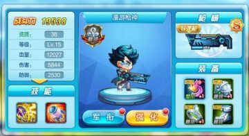 中间显示的是出场的角色形象,军衔按钮和强化按钮;角色形象左上的是当前使用的勋章;