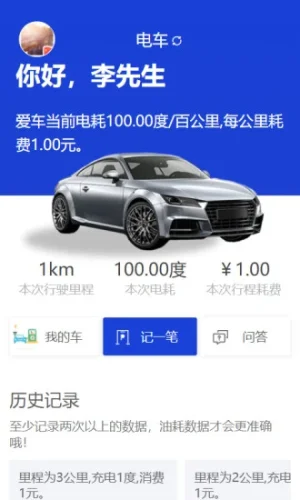 进行燃油车、纯电动车、混动车、插电式、摩托车、电瓶车等等车型的油耗、电耗记录