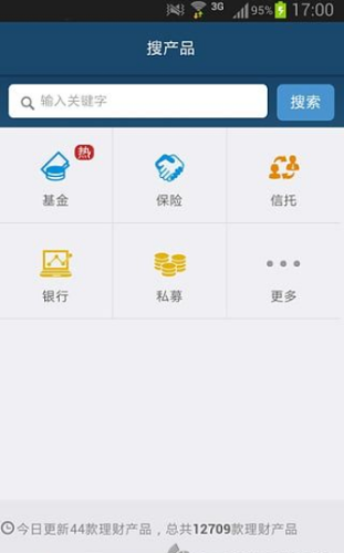 2、产品超市,一键查询:轻松选购、涵盖五大类,集合13600多款正规金融产品;