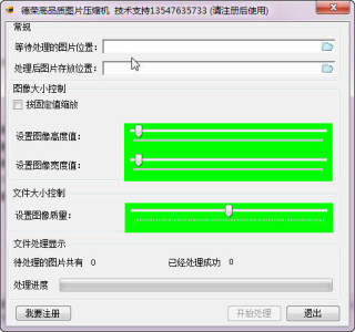 德荣高品质图片压缩机是2016最新的一款图片压缩器,这款软件可以帮助你将图片的体积进行极限压缩,在保证图片质量清晰的情况下将图片体积最小化,帮助你在将图片上传到空间、论坛、相册等地方时不用占据太大的空间,保证你的上传下载速度,将图片进行批量压缩处理,非常方便且实用!