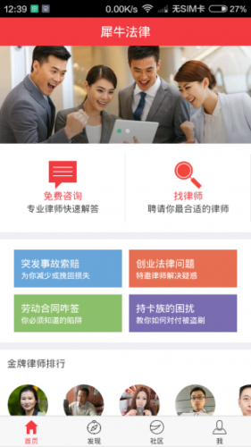 犀牛法律app安卓版是一款手机法律咨询软件。在这里,用户们可以免费咨询法律方面的问题,这里有法律人对各种法律实务的分析和讲解。,用户可以在这里查询法律问题、寻找律师帮助,让用户不在烦恼法律难题。