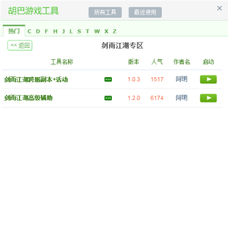 本款胡巴剑雨江湖辅助工具,开启时需要依靠浏览器,运行时可独立使用,支持浏览器,微端,目前提供了两款游戏脚本,支持每日任务、世界boss、日常托管等功能。