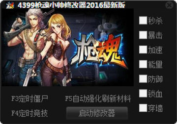 4399枪魂小帅修改器是一款2016年最新的枪魂游戏辅助,这款辅助功能强大,并且免费提供给玩家使用,辅助支持修改游戏属性、秒杀、暴击、加速、无限能量、绝对防御、锁血、穿墙等等,有了这款辅助,玩家可以轻松玩游戏,感受最佳的游戏体验!