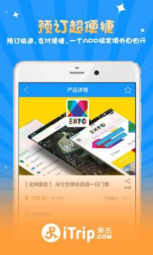 *预订快速,支付便捷,iTrip爱去自由,世界近在眼前。