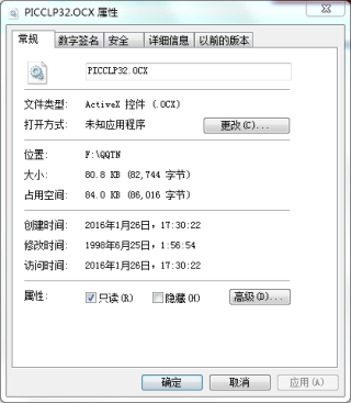 2、复制文件“Picclp32.ocx”到系统目录下。