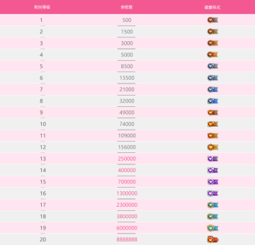 您与艺人的亲密度达到500后自动获得该艺人的粉丝徽章,粉丝徽章共有20个等级。