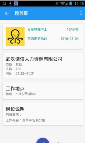 2、[丰富齐全的兼职] 涵盖了翻译,销售,模特,促销,礼仪,家教,客服,校园兼职,线上任务等众多的兼职领域,区域包括了北京,上海,天津,武汉,广州等上百个城市;