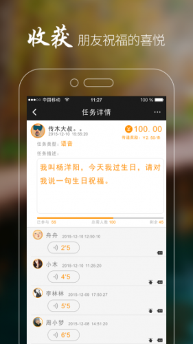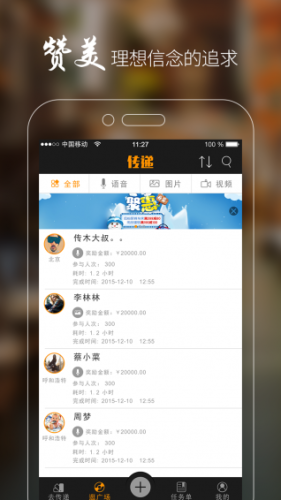 传递app支持语音、视频、还有帅哥美女出现在图片里的照片,传递者们将用这些形式来回报您的任务索取你的赏金。
