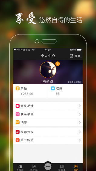传递app提供任务发布功能和任务接受功能,发布任务需要支付任务”赏金”,”赏金”将完全由完成任务的传递者完全获得。