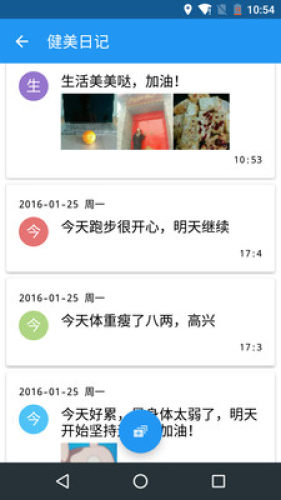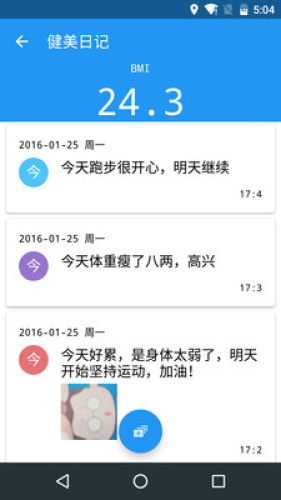 可以记录每天的照片,体 重、身高,心情等。记录你每次或是每天的运动日记,让你合理规划自己的减肥之路,丰富多彩的运动圈子,可以分享自己的健美效果,也可以和别的健美大咖交流 心得。