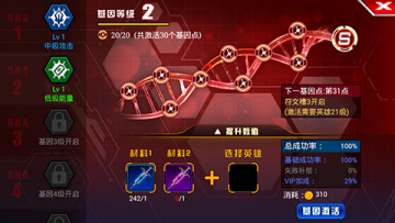 在英雄成功转职后,会开启一个新的界面,里面有基因和符文两部分,都可以来培养。具体的数值我们可以点击【提升数值】进行查看,其中有战斗力提升的详细数值。